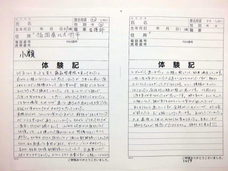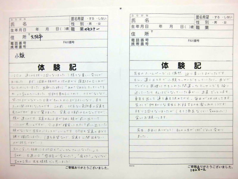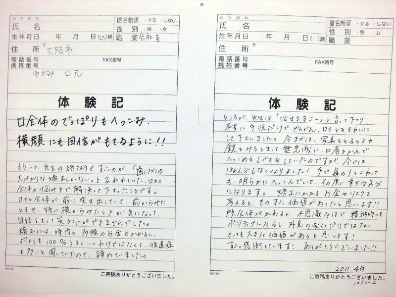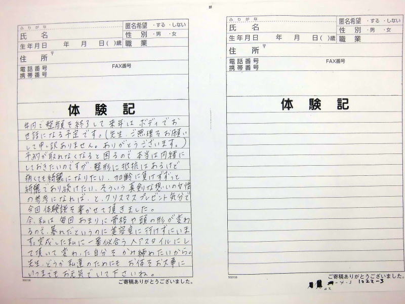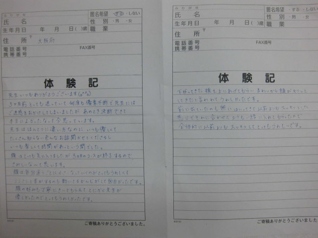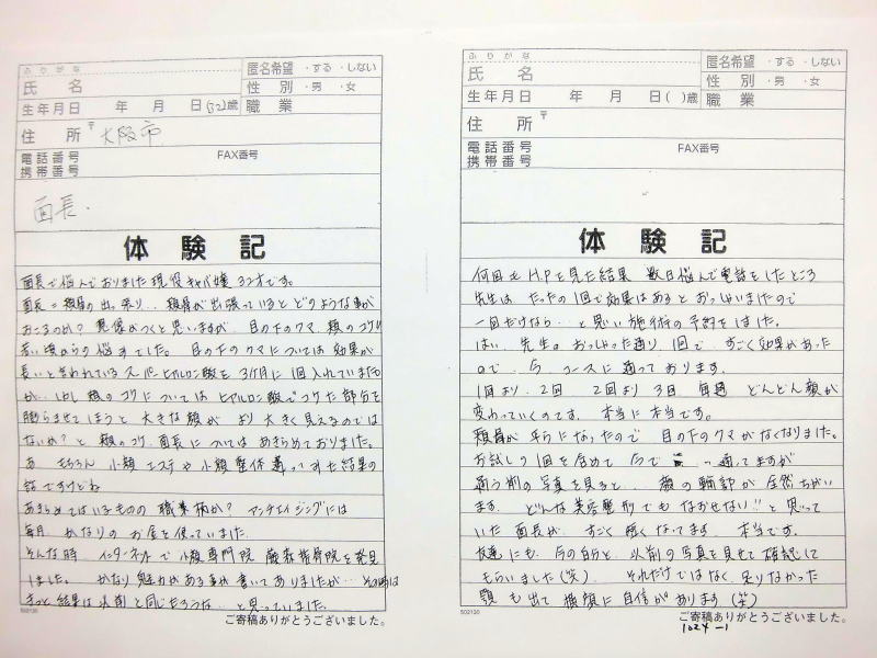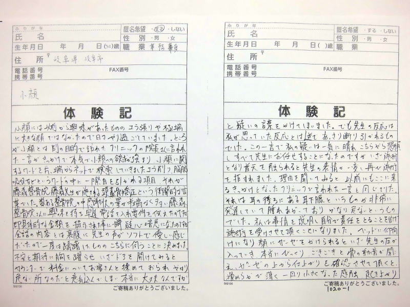 ません、これからも当院の貴重な体験記