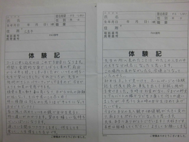 自筆体験記新着 下記にあります。