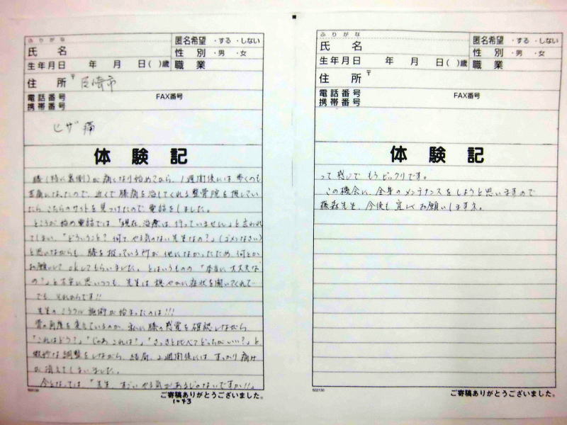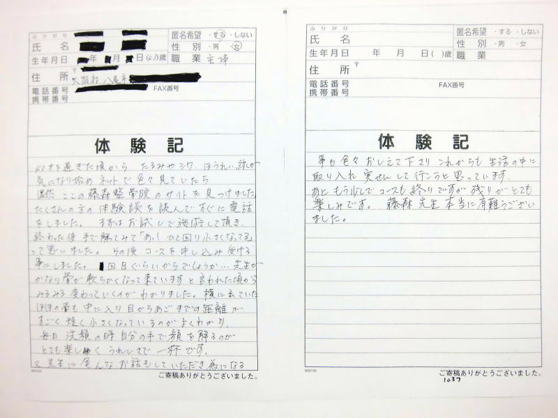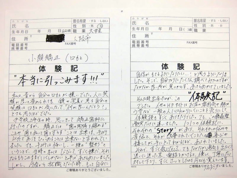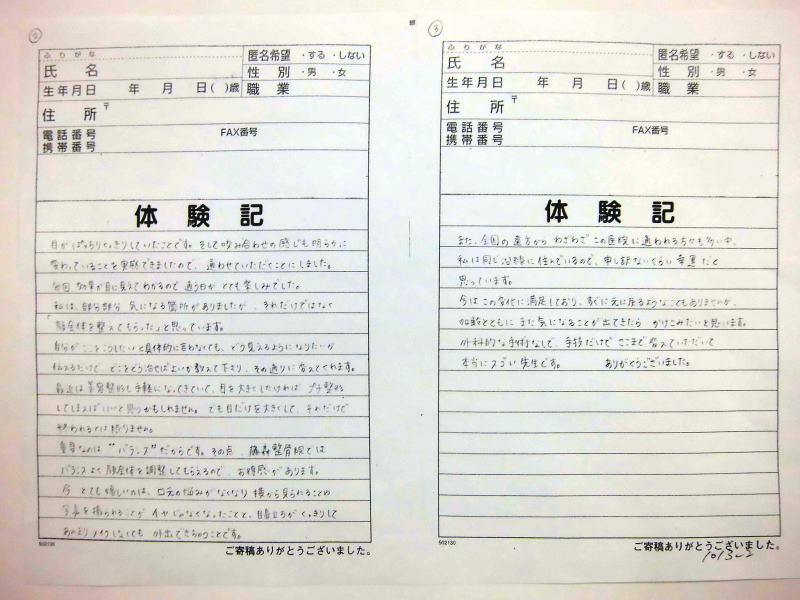 ません、これからも当院の貴重な体験記