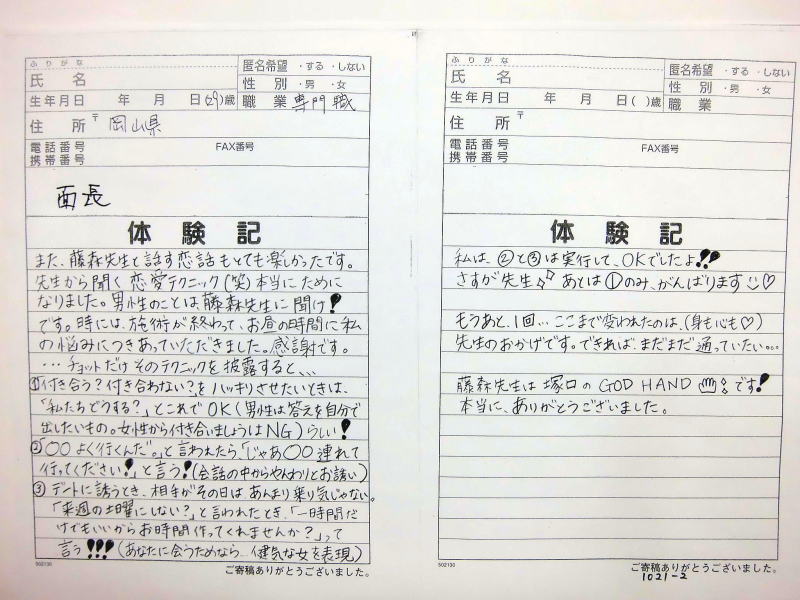 自筆体験記新着 下記にあります。